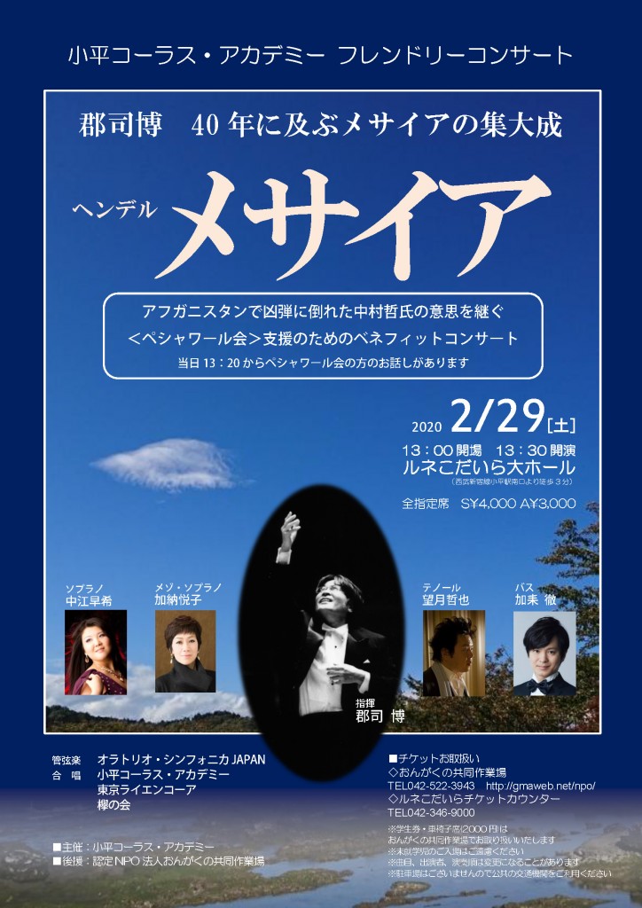 2020/02/29 ヘンデル『メサイア』~小平コーラス・アカデミー フレンドリーコンサート~※ペシャワール会支援ベネフィットコンサート