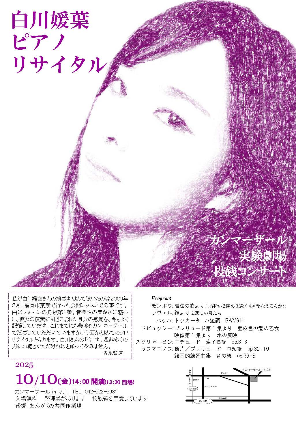 カンマーザール実験劇場 投げ銭コンサート 白川姫葉ピアノリサイタル