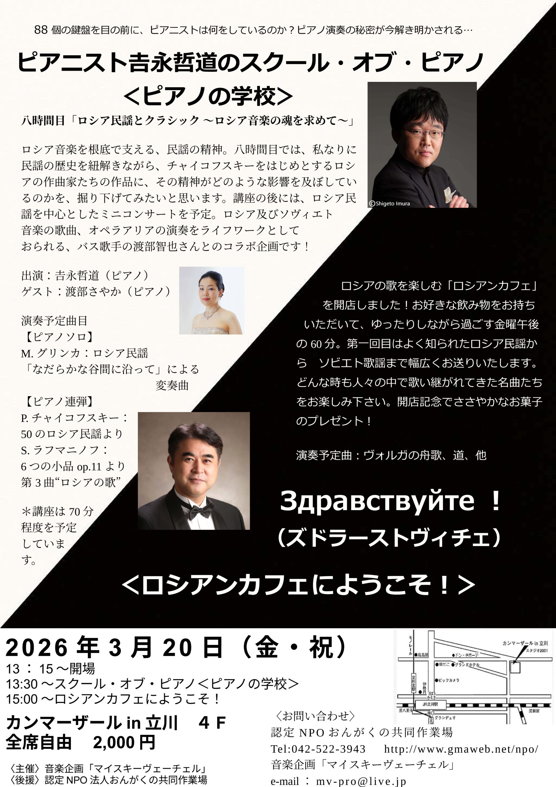 13:00開場/13:30ピアノの学校/15:00ロシアンカフェ
