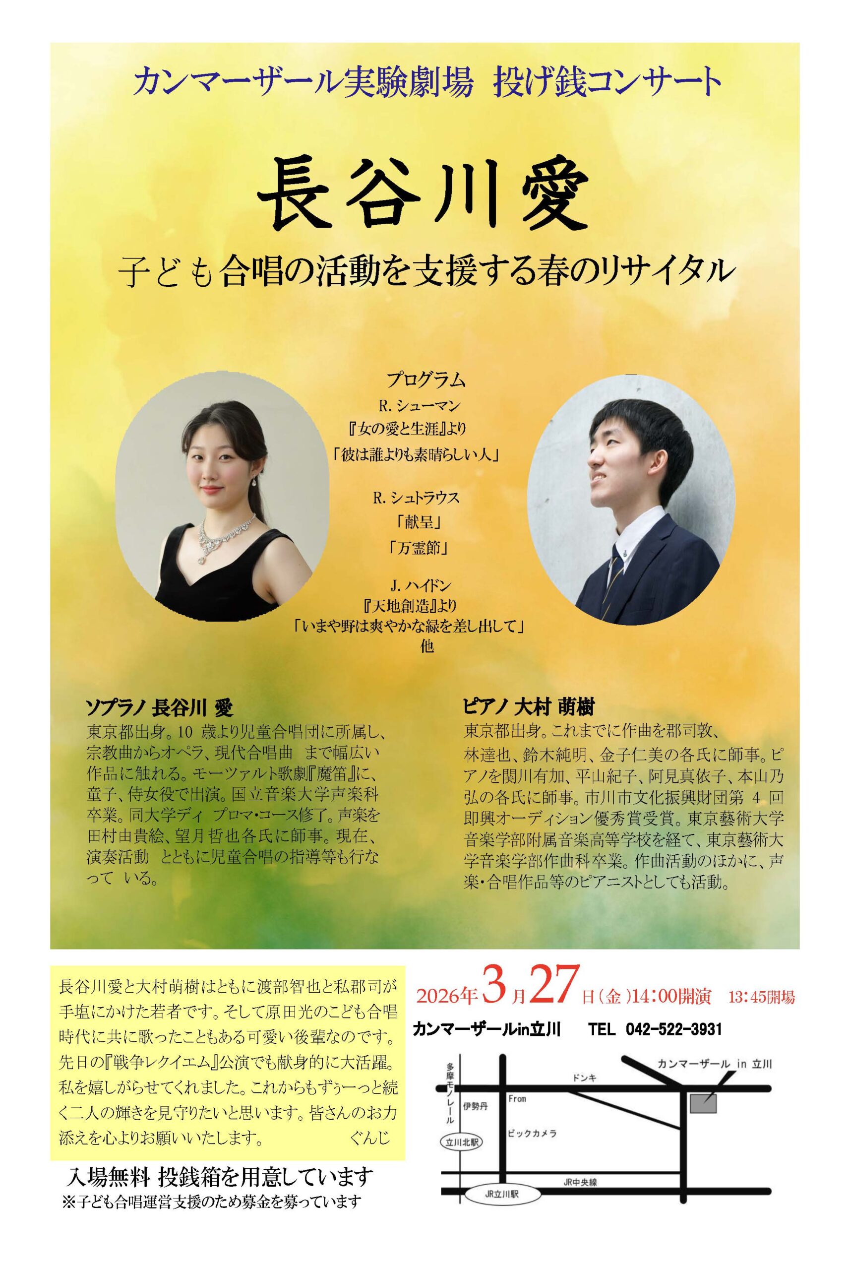 カンマーザール実験劇場 投げ銭コンサート 長谷川愛~子ども合唱の活動を支援する春のリサイタル~
