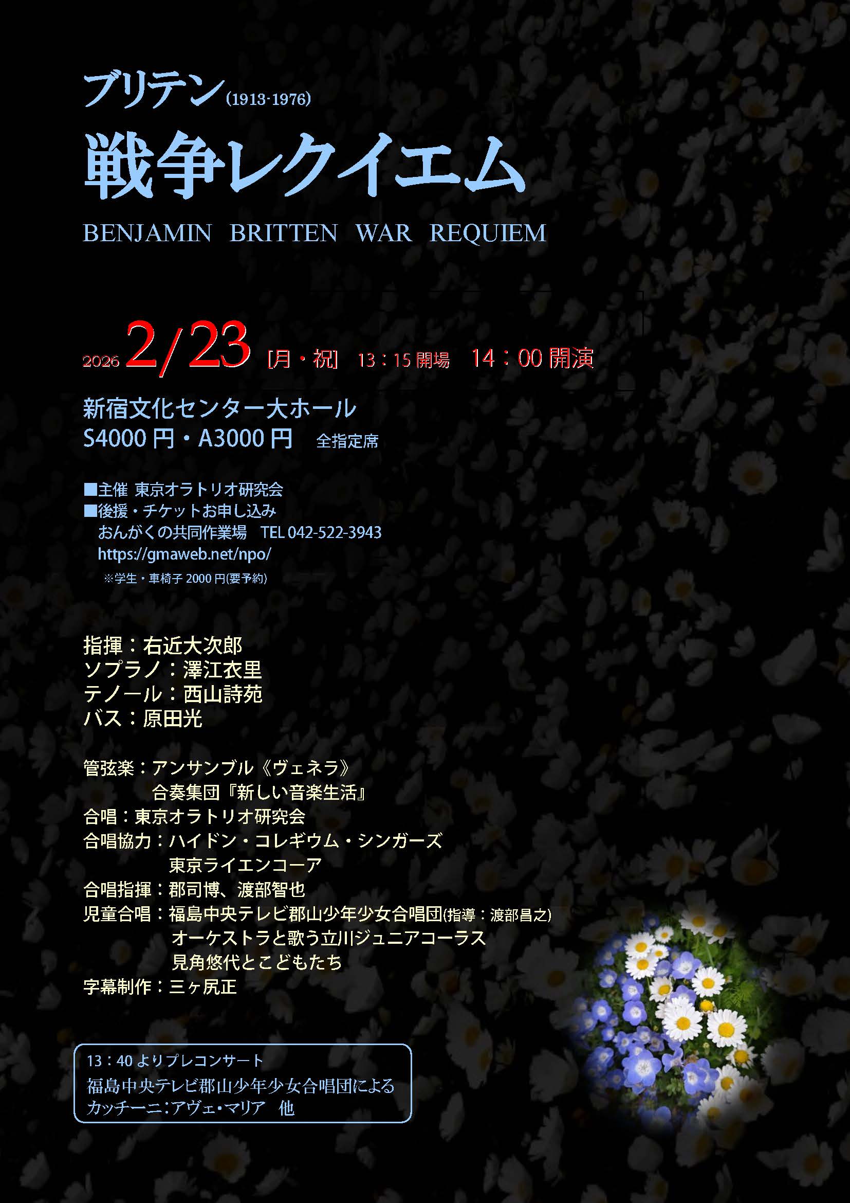 - 全席指定 S4000円・A3000円/学生・車椅子2000円(要予約)