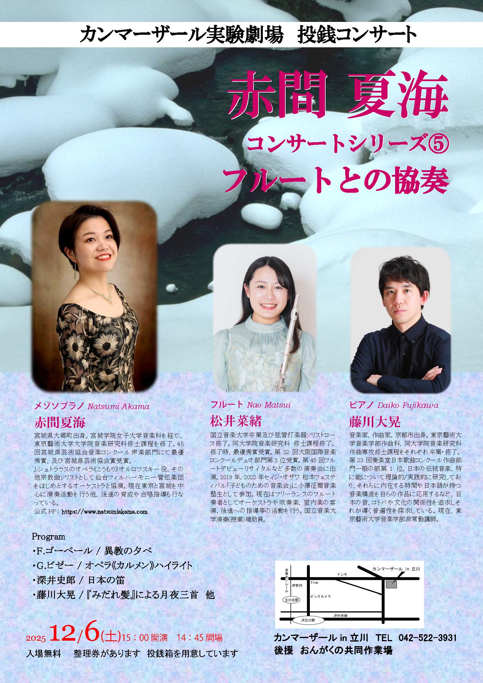 赤間夏海 コンサートシリーズ⑤ フルートとの協奏 クリスマスコンサート~カンマーザール実験劇場 投銭コンサート~